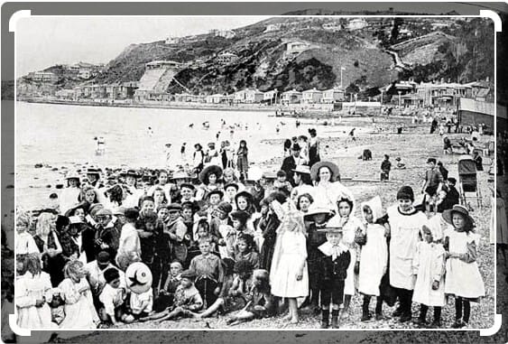 🕰️ Welly’s Time Machine – Holidaymakers enjoying Oriental Bay back in 1902.
